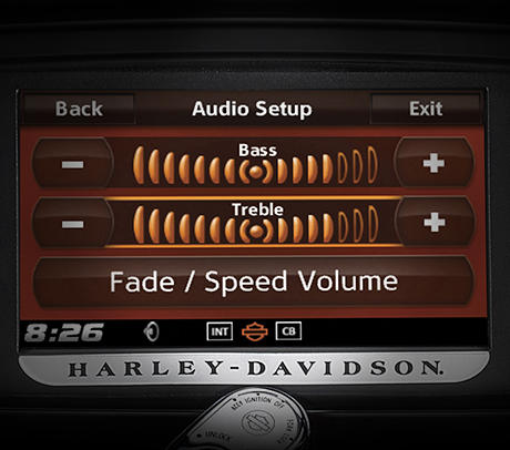 Die vielleicht wichtigste News: Sie erzielen jetzt eine um 25 Prozent höhere Lautstärke. Das neue Boom!™ Box 4.3 Audiosystem leistet bei einem Klirrfaktor von 1 Prozent satte 25 Watt pro Kanal. Zudem ist es mit einem perfekt auf die Hörumgebung auf einem Bike abgestimmten Equalizer ausgestattet, damit Sie Ihre Lieblingstracks exakt so wahrnehmen, wie Sie sie schätzen. Das neue Speed-Tuning-System bietet mehr als eine bloße Lautstärkeanpassung an die unterschiedlichen Geschwindigkeiten: Es passt auch die Bass- und Höhenwiedergabe an das Tempo an, so dass Sie stets einen optimalen Klang genießen, ob Sie nun gemächlich dahinrollen oder Ihrer Maschine die Sporen geben. Hören Sie selbst!