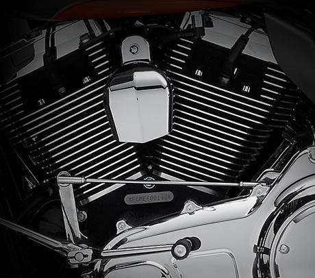 Im Jahr 1909 stellte Harley-Davidson erstmals einen Harley-Davidson V2-Motor vor. Es folgten viele Optimierungen, zahlreiche Innovationen und eine Vielzahl von Modellen. Millionen von Meilen wurden mit V-Twins zurückgelegt, etliche Motorengenerationen folgten dem ersten Modell, und jetzt steht die jüngste Evolutionsstufe des V-Twins bereit: der neue Hochleistungs-V2, der Twin-Cooled Twin Cam 103™. Er ist der beste V-Twin, den Harley-Davidson je erschaffen hat. Ein 103 Kubikzoll großes, luft- und flüssigkeitsgekühltes Kraftpaket. Die Flüssigkeitskühlung im Auslassbereich seiner Zylinderköpfe sorgt unter sämtlichen Betriebsbedingungen und Außentemperaturen für einen ausgeglichenen Temperaturhaushalt. Ein höheres Verdichtungsverhältnis bürgt für noch mehr Power. Der neue Luftfilter lässt den Motor freier atmen, und neue Nockenwellen optimieren das Drehmoment im unteren Drehzahlbereich. Kein anderer luftgekühlter Harley-Davidson Motor glänzte jemals mit kräftigeren Durchzug.