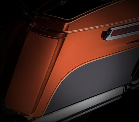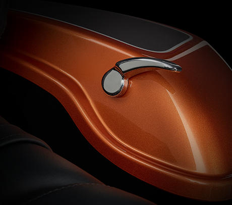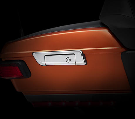 Bei jedem Staufach- und Kofferdeckel der Touring Familie hielt Harley-Davidson sich eine Regel vor Augen: Was sich nicht auf einen einzigen Knopfdruck oder mit einer im Handschuh steckenden Hand öffnen lässt, hat nichts an unseren Motorrädern verloren. Während der grundlegenden Überarbeitung dieser Bikes waren sich sämtliche Motorradfahrer, mit denen Harley-Davidson über Reisen sprach, in einem Punkt einig: Niemand will auch nur vorübergehend etwas auf dem Boden abstellen, bevor es in einen Koffer gepackt werden kann.