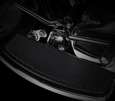 Die Möglichkeit, die Fußhaltung zu variieren, sorgt unterwegs für ein entscheidendes Plus an Langstrecken-Komfort. Harley-Davidson Fahrertrittbretter haben sich über Jahrzehnte bewährt. Und dank der höhenverstellbaren Beifahrer-Trittbretter kommt auch Ihr Passagier nicht zu kurz. Gummi-Elemente entkoppeln die Trittbretter effizient von den Motorvibrationen. Und die Schaltwippe sorgt für ein einzigartig cooles Schaltgefühl. Daran gewöhnt man sich im Nu – und will es nie mehr missen!