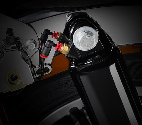 Mit der serienmäßigen Luftunterstützung können Sie das Fahrwerk Ihrer Maschine an die jeweilige Beladung, die Fahrbahnbeschaffenheit und Ihre ganz persönlichen Vorlieben angleichen. Reduzieren Sie den Luftdruck, um ein sanfteres Fahrerlebnis zu genießen, erhöhen Sie ihn, um das Fahrwerk härter zu machen. Das Ventil befindet sich zwischen Koffer und Heckfender. Bei dieser Harley-Davidson dreht sich alles um den Komfort – genießen Sie ihn!