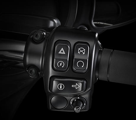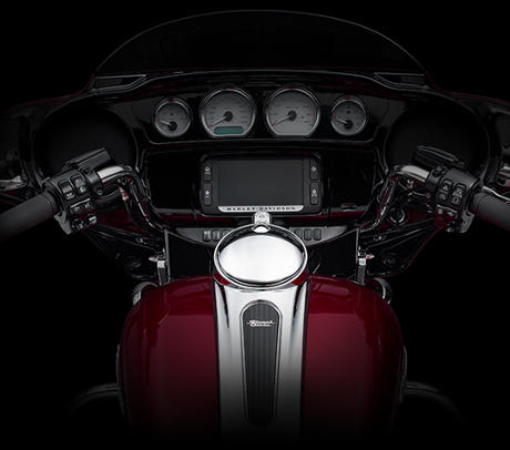 Es ist schwer, die Fahrt zu genießen und sich auf den Verkehr zu konzentrieren, wenn die Schalter am Lenker umständlich zu bedienen sind. Deshalb hat Harley-Davidson den Lenkerarmaturen der neuen Touring Maschinen genauso viel Aufmerksamkeit geschenkt, wie dem Rest der Bikes. Sie sind nun ergonomischer gestaltet und exakt so positioniert und ausgerichtet, dass Sie perfekt unter Ihrem Daumen liegen. Harley-Davidson hat eine leicht aktivierbare Geschwindigkeitsregelanlage, griffgünstige Bedienelemente für die Infotainment Funktionen und einen leicht greifbaren Trigger zur Aktivierung der Displayanzeigen angebracht. Zudem wird jetzt jede Tastenaktivierung durch ein vertrauenseinflößendes, fühlbares Klicken bestätigt. Auch der Zündschalter wurde optimiert. Und die elektrische Anlage ist bereits auf das einfache Customizing mit weiterem elektrischen Parts and Accessories vorbereitet.