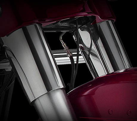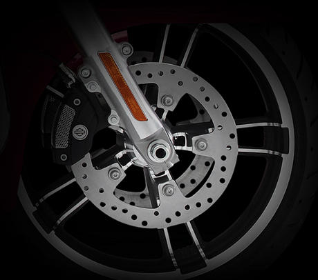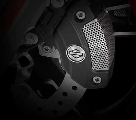Vertrauen ist gut, Kontrolle ist besser. Brembo-Hochleistungs-Doppelscheibenbremsen vorn sorgen für eine exakt dosierbare Verzögerung, die Vertrauen schafft und die perfekte Kontrolle über das Bike gewährleistet. Die Vierkolben-Bremssättel vorn und hinten zählen zum Besten, was auf dem Markt zu haben ist. Ein weiteres Beispiel für die Sorgfalt der Motor Company, die sich bis ins Detail erstreckt, um Ihnen eine sorgenfreie Fahrt zu sichern.
