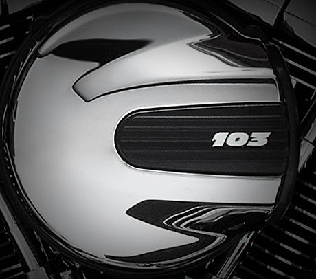 Der echte Harley-Davidson Stil mit viel Liebe zum Detail ist unverkennbar. Kein anderer Motorradhersteller kann einem Vergleich standhalten. Schwarz pulverbeschichtete Zylinderköpfe und Zylinder akzentuieren polierte Kühlrippenenden und verchromte Rocker Covers. Ein Metall gewordenes Juwel. Rassig. Vor Leistung strotzend. Von den klassischen Kanten der Kühlrippen bis zu den schnörkellosen Linien der Gehäuse- und Verkleidungsteile ist der Twin Cam 103™ Motor eine eiserne Manifestation von Tradition und Fahrspaß.