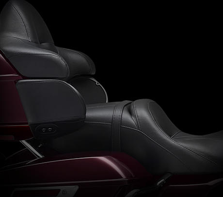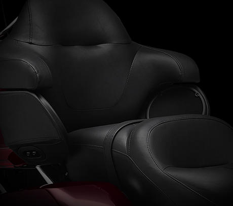 So klassisch Ihnen der Sitz auch erscheinen mag: Er ist anatomisch günstig geformt und verfügt über eine tiefe, konturierte Schale sowie ein schlankes Profil. Als ultimativer Tourensattel reduziert er die Belastung der Oberschenkel, stützt den Rücken und ist für Fahrer unterschiedlicher Statur gleichermaßen bequem. Zugleich unterstreicht der ergonomisch geformte Sitz mit seinem hochwertigen Bezug und attraktiv gestalteten Ziernähten die harmonische Linienführung der Maschine – Details, die Sie in dieser Form nur bei einer echten Harley-Davidson® finden.