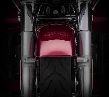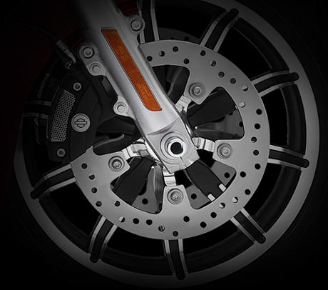 Vorn ist die Road Glide Ultra mit einem 17 Zoll großen Impeller® Zehnspeichen-Leichtmetallgussrad ausgerüstet. Passend dazu: das 16 Zoll große Impeller Hinterrad. Die neuen Bremsscheiben passen perfekt zum einzigartigen Design der Räder. Wenn Sie schon dabei sind, dann gehen Sie aufs Ganze!