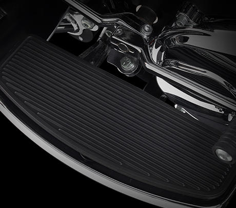 Ihre Stiefel wurden zum Fahren gemacht - egal wie sie aussehen. Wir haben die langen Trittbretter ausgiebig getestet und mit einer Gummibeschichtung versehen. Das steigert den Komfort ebenso wie die höhenverstellbaren Soziustrittbretter. Und zum Gangwechsel können Sie entweder den herkömmlichen Schalthebel oder die noch einfachere, bequeme Fersenschaltung verwenden. Es dauert vielleicht eine Weile, aber wenn Sie sich erst einmal an den sanften Schaltrhythmus gewöhnt haben, wollen Sie ihn nicht mehr missen.