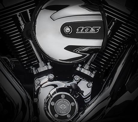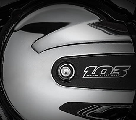 Im Jahr 1909 stellte Harley-Davidson erstmals einen V2-Motor vor. Es folgten viele Optimierungen, zahlreiche Innovationen und eine Vielzahl von Modellen. Millionen von Meilen wurden mit V-Twins zurückgelegt, etliche Motorengenerationen folgten unserem ersten Modell, und jetzt steht die jüngste Evolutionsstufe des V-Twins bereit: unser neuer Hochleistungsmotor, der Twin-Cooled Twin Cam 103™. Er ist der beste V-Twin, den wir je gebaut haben. Ein 103 Kubikzoll großes, luft- und flüssigkeitsgekühltes Kraftpaket. Die Flüssigkeitskühlung im Auslassbereich seiner Zylinderköpfe sorgt unter sämtlichen Betriebsbedingungen und Außentemperaturen für einen ausgeglichenen Temperaturhaushalt. Ein höheres Verdichtungsverhältnis bürgt für noch mehr Power. Der neue Luftfilter lässt den Motor freier atmen, und neue Nockenwellen optimieren das Drehmoment im unteren Drehzahlbereich. Kein anderer luftgekühlter Harley-Davidson Motor glänzte jemals mit einem kräftigeren Durchzug im fünften Gang. Sie überholen nicht nur mühelos mit einem sanften Dreh am Gasgriff, Sie werden auch die reduzierte Abwärme des Motors zu schätzen wissen.