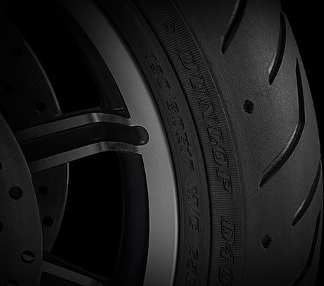 Dieser 180er Hinterradreifen soll nicht nur den Heckfender ausfüllen, – er hat’es wirklich in sich. Die härtere Gummimischung der Dunlop® Multi-Tread™ Technologie in der Mitte der Lauffläche bürgt für eine hohe Laufleistung, während die weichere Mischung an den Flanken in Kurven zuverlässig für Grip sorgt. Der perfekte Reifen, um Meile für Meile die Agilität dieses Bikes unter Beweis zu stellen. Und das Lächeln, das Ihnen die Maschine in jeder Kurve ins Gesicht zaubert, hält bis an Ihr Ziel an – garantiert!