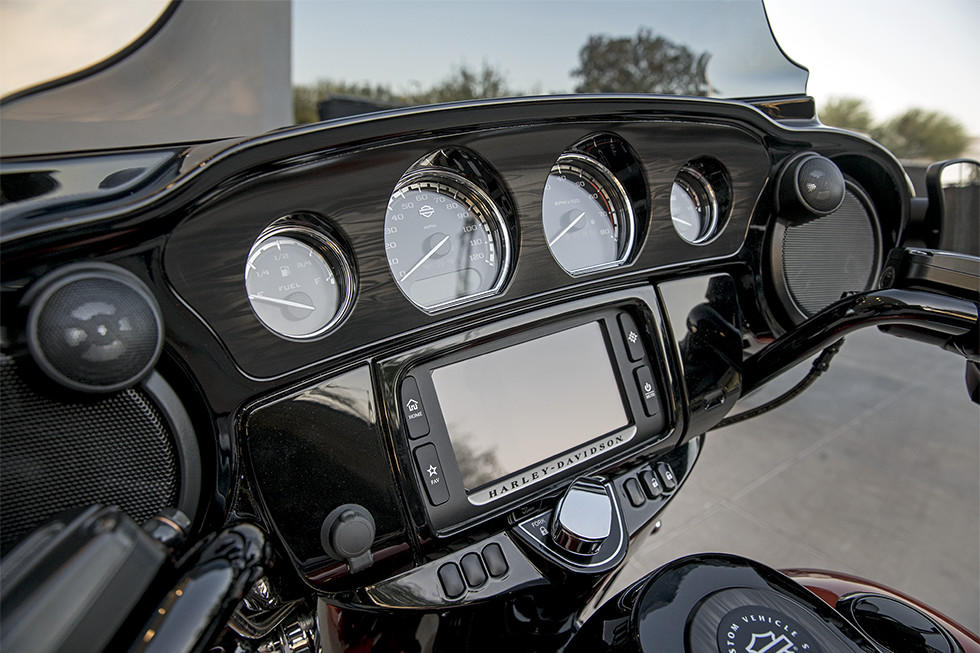 Starken, satten Klang liefert auch das Soundsystem: die Lautsprecher der 6,5" BOOM! Stage II Anlage erhalten ihre Power von einem 300-Watt-Verstärker - nicht nur der Motor, auch die Stereoanlage dieser Maschine ist außergewöhnlich kraftvoll.