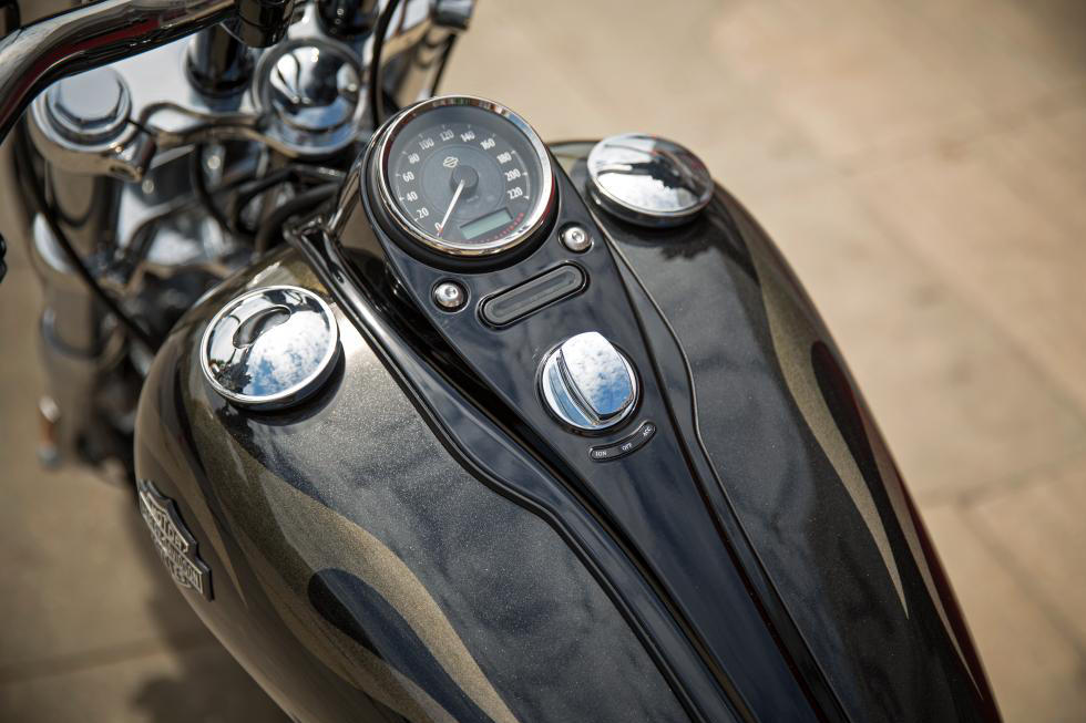 Von der langen Gabel mit dem 21-Zoll-Speichenrad bis zum Tommy Gun Auspuff - die Wide Glide überträgt das Old School Chopper-Design auf eine neue Generation von Bikes. Das Styling ist konsequent von den Flammen auf dem Tank bis hin zur minimalistischen, schwarzen Sissy-Bar. Genießen Sie den kraftvollen 103 Motor. Auch die gesamte Heckpartie macht keine Ausnahme. Kommen Sie näher und wir verraten Ihnen noch mehr. Nicht ein Gramm dieser unbändigen Haltung ist Kulisse.