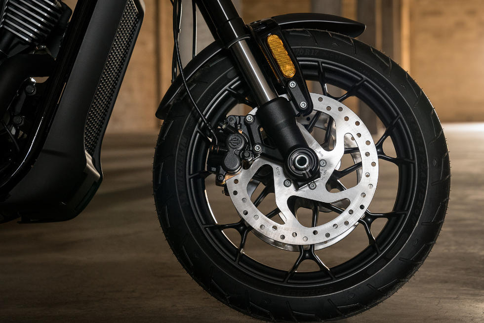 - In Synthese mit dem 17-Zoll-Vorderrad sorgt die neue Fahrwerksgeometrie für besonders gute Handlingeigenschaften.