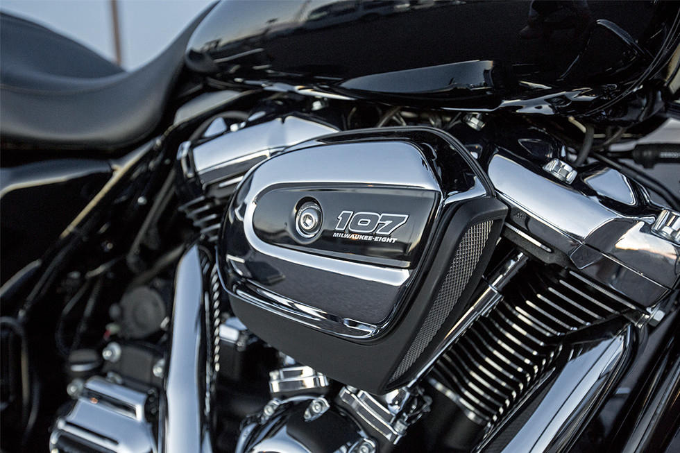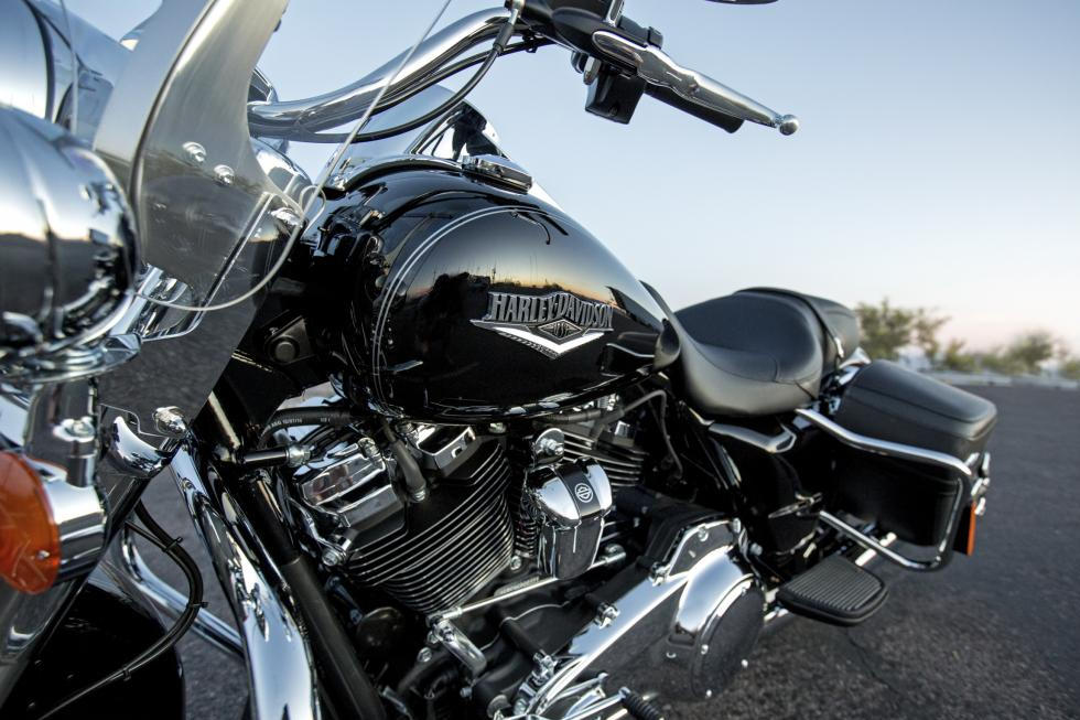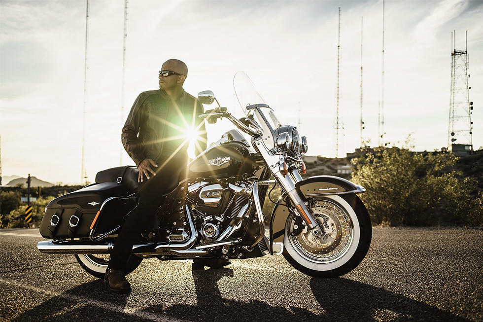 Die Welt bewegt sich schnell, aber auf der Road King Classic scheint die Zeit stillzustehen. Speichenräder umhüllt von Weißwandreifen. Ein großes Chrom-Scheinwerfergehäuse und eine Fülle von Styling-Details für eine unkompliziertere Epoche. Das Bike ist jedoch modern. Unter den Lederdetails der Satteltaschen steckt wetterfestes, dauerhaftes Vinyl. Und hierhin gehören natürlich der brandneue Motor, der Milwaukee Eight 107, die neue "dual bending valve"-Frontfederung und die Emulsion-Hinterradfederung.
