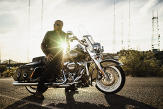 Weißwandreifen auf Speichenrädern und lederbezogene Seitenkoffer. Aus gutem Grund heißt sie Road King Classic.Sie werden nicht nur vergessen, welcher Tag es ist. Sie vergessen auch, in welchem Jahr Sie sind.