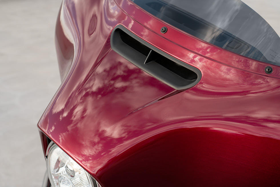Noch nie war es besser, unzählige Meilen abzuspulen. Sie fragen sich, wie ein Touring-Bike mit Premium Features ausgerüstet sein kann, ohne den reduzierten Bagger-Look zu verlieren? Schauen Sie in die schlanke Batwing-Verkleidung aus dem und Sie erhalten eine Ahnung davon. Da befinden sich das hochwertige 6,5-Zoll-Infotainmentsystem mit Touchscreen und das BOOM!™ Box 6.5 GT Audiosystem. Und dann schauen Sie auf die Details: farblich abgestimmte Verkleidungsschürze, 19-Zoll-Enforcer Vorderrad, Custom-Rückleuchte und Heckschürze. Und das ist längst nicht alles. Ja, die Street Glide® Special ist gestrippt, aber sie ist dennoch voll ausgestattet.