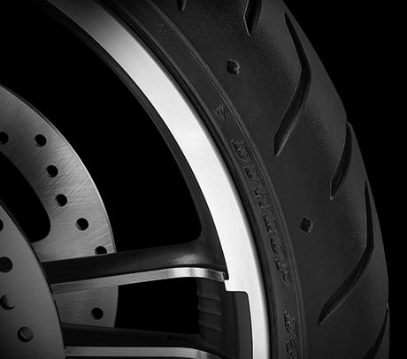 Dieser 180er Hinterradreifen soll nicht nur den Heckfender ausfüllen, – er hat’es wirklich in sich. Die härtere Gummimischung der Dunlop® Multi-Tread™ Technologie in der Mitte der Lauffläche bürgt für eine hohe Laufleistung, während die weichere Mischung an den Flanken in Kurven zuverlässig für Grip sorgt. Der perfekte Reifen, um Meile für Meile die Agilität dieses Bikes unter Beweis zu stellen. Und das Lächeln, das Ihnen die Maschine in jeder Kurve ins Gesicht zaubert, hält bis an Ihr Ziel an – garantiert!