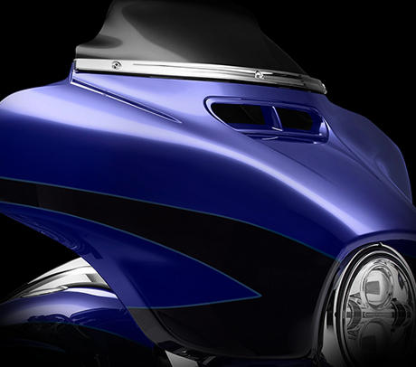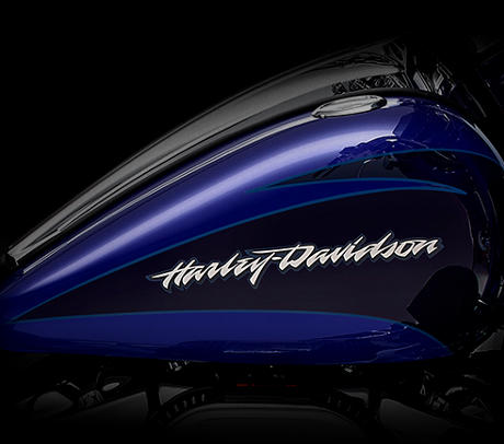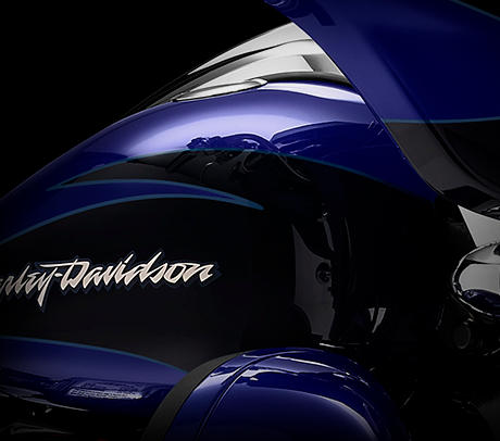 Zum unverwechselbare Stil der Harley-Davidson® CVO Street Glide gehört nicht zuletzt, dass sie reichlich Flächen für eine begeisternde Sonderlackierung bietet. Der klassisch geformte, markante Tank bietet nicht nur mehr Fläche für die hochwertige Custom Lackierung, sondern fasst auch 22,7 Liter Benzin für ausgedehnte Touren ohne Tankstopp. Ein geringer Verbrauch ist wichtig. Aber Stil eben auch. Frische, auffallende Farben und präzisionsgefertigte Harley-Davidson® Tankmedaillons runden den einzigartigen Look dieses robusten Tourers ab.