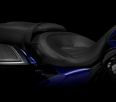 Modernes Styling und Komfort, ohne auch nur ein Stück Nostalgie einzubüßen: Dieser ergonomisch optimal geformte Touring-Sattel reduziert den Druck auf die Oberschenkel, stützt den Rücken und ist bei nahezu jeder Körpergröße komfortabel. Und die niedrigere Sitzhöhe – 26,1 Zoll um genau zu sein – sorgt für sicheres Fahrgefühl. Das echte Leder und die Qualitätsnähte geben der perfekten Ergonomie den optischen Schliff - ein attraktives Paket, das es nur bei Harley-Davidson® gibt. Das ist Können im Dienst des Komforts, und das beste Mittel gegen Ermüdung auf langen Strecken!