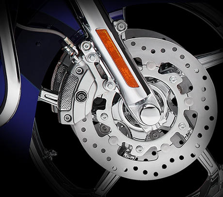 Das Bike verfügt über polierte 5-Speichen Aggressor Aluminium-Räder vorn und hinten sowie über passende schwimmend gelagerte 5-Speichen Bremsscheiben vorn. Beides hervorragend abgestimmt auf Modelle mit verchromtem Motor. Bei Modellen mit schwarzem Motor haben wir uns für die Contrast Chrome Aggressor-Räder entschieden, um den coolen Look zu komplettieren. Bei beiden gibt der kurze Frontfender den Blick aufs Vorderrad frei. Custom Vehicle Operations™ steht für hubraumstarke Motoren, außergewöhnliche Lackiererungen und wuchtige Räder. Wie Sie hier sehen, verleihen diese Räder dem Bike einen ganz besonderen Look.