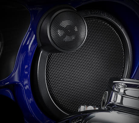 Sie erwarten eine Stereoanlage mit klarstem und bestem Sound - und genau die erhalten Sie mit der CVO™ Street Glide®. Dafür sorgen die 6,5 Zoll BOOM! Stage II Dreiwege-Frontlautsprecher. Sie liefern klarsten, besten Sound, wo auch immer Sie gerade unterwegs sind.