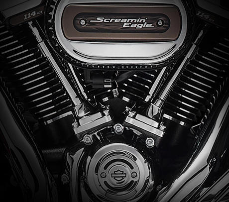 Den brandneuen Milwaukee-Eight 114 Motor erkennt man schon von weitem. Der Luftfilter mit dem Lufteinlass im Rennsportstil macht klar, dass es sich hier um einen neuen mächtigen Harley-Davidson Antrieb handelt. Wer etwas genauer hinschaut, erkennt, dass der authentische Look eines luftgekühlten Harley-Davidson® V-Twin erhalten geblieben ist.