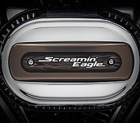 Auch der brandneue Ventilator Elite Luftfilterdeckel mit Screamin Eagle 114 Kubikinch Dekor, der in den klassischen Linien des Twin Cooled™ Milwaukee-Eight™ 114 Motors gehalten ist, fällt sogleich ins Auge. Er lässt keinen Zweifel an der Kraft dieses Motors aufkommen.