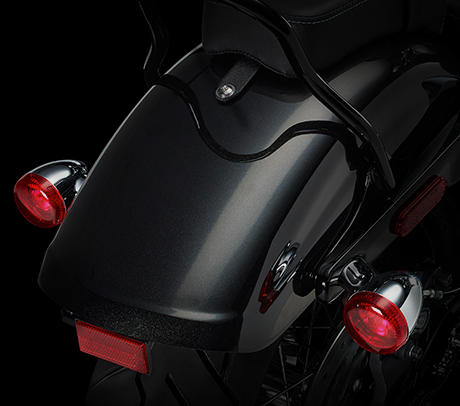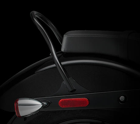 Die schwarze, leicht nach hinten gezogene Sissy Bar ist eine Hommage an den klassischen Chopper-Stil und verleiht dem Bike einen einzigartigen Look. Geben Sie Ihrem Beifahrer etwas zum Anlehnen oder schnallen Sie Ihr Gepäck für einen Wochenendtrip daran fest.