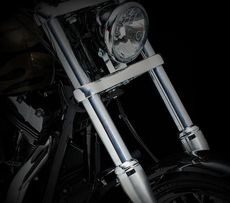 Genau das macht eine echte Wide Glide aus: bullige Gabelbrücken und eine lange Gabel für eine coolen Auftritt. Allein die Menge an Stahl im vorderen Bereich verleiht dieser Harley-Davidson® schon aus meilenweiter Entfernung ein markantes Aussehen.