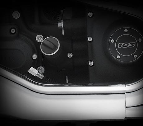 Genießen Sie den unverwechselbaren Look des Twin Cam 103 Motors, der an seiner Herkunft keine Zweifel aufkommen lässt.