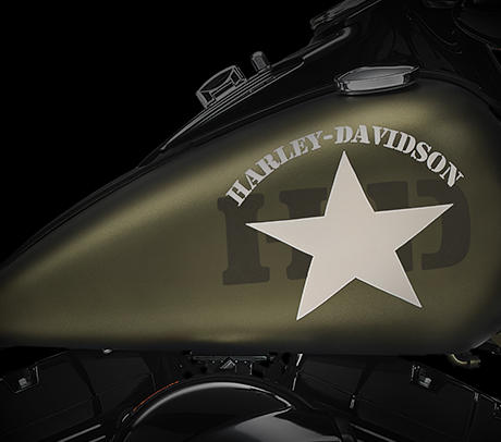 Sehen Sie sich die Tankgrafiken der Softail Slim s mal genau an: