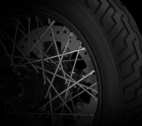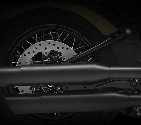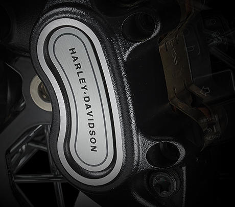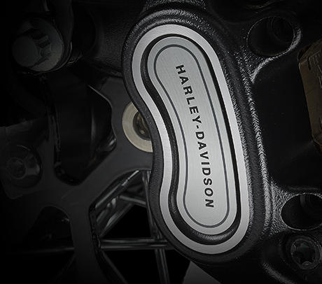 Am Handbremshebel der Softail sind besonders geringe Handkräfte erforderlich. Zugleich punktet die Bremse mit perfekter Dosierbarkeit und hervorragendem Ansprechverhalten. Dafür bürgen der Hauptbermszylinder mit besonders großem Kolbendurchmesser, der steif ausgelegte Vierkolbenbremssattel mit 34 und 32 mm großen, speziell beschichteten Kolben und die 300 mm große Bremsscheibe am Vorderrad.