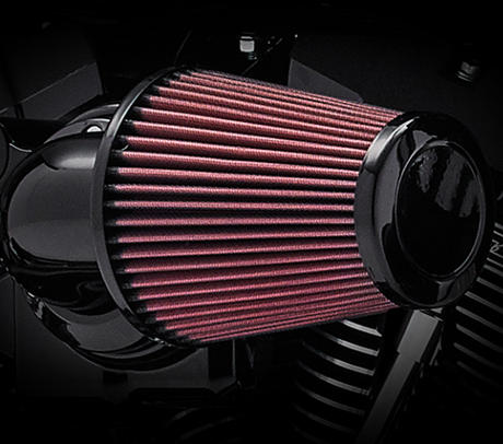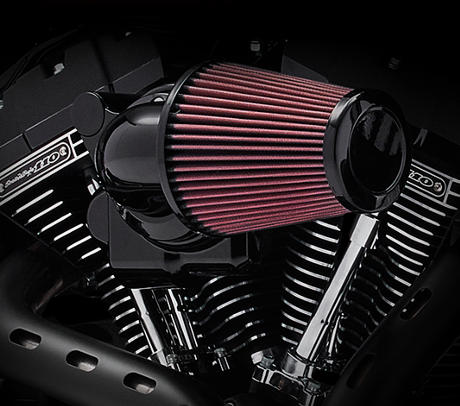 Die Low Rider S liefert die beeindruckende Power des Screamin’ Eagle Twin Cam 110, der durch den schwarzglänzenden „Heavy Breather“ Performance-Luftfilter frei atmet.