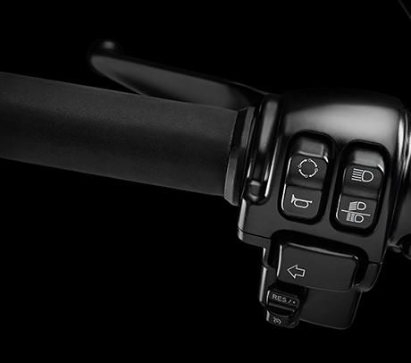 Der minimalistische Stil der Low Rider S wird noch schlichter mit dem serienmäßigen elektronischen Gasgriff. Kein Kabelgewirr steigt den Lenker hoch.