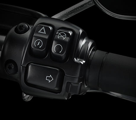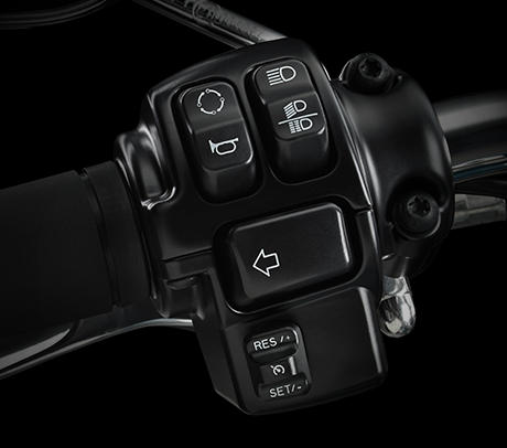Der minimalistische Stil der Heritage Softail Classic wird noch schlichter mit dem serienmäßigen elektronischen Gasgriff. Werfen Sie einen Blick darauf. Kein Kabelgewirr am Lenker. Die Geschwindigkeitsregelanlage gehört auch dazu, serienmäßig. Die Schalter liegen in bequemer Griffweite, damit sich die Geschwindigkeit leicht mit dem linken Daumen einstellen lässt. Das ist alles, was es braucht, um Ihrem Handgelenk ein Pause zu verschaffen, während Sie unzählige Kilometer abspulen.