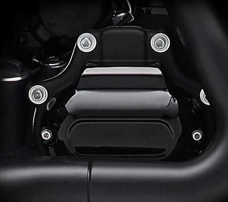 Unter dem düsteren Look dieses Touring-Motorrads schlägt das Herz des Milwaukee-Eight 107 V-Twin-Motors. Neben dem 114 Kubikinch Motor ist dies der kraftvollste Motor, den wir je gebaut haben. Er läuft mit einer äußerst niedrigen Betriebstemperatur. In schwarzem Custom-Finish. Mit einem einzigartigen speziell bearbeiteten Luftfiltereinsatz. Präzises Ansprechverhalten und ein satter, klarer Sound. Vier Ventile pro Zylinder, per Zahnkette angetriebene Nockenwelle, zwei Zündkerzen, Ausgleichswelle und gummigelagert. Ein völlig neuer Motor und ein völlig neues Fahrgefühl.