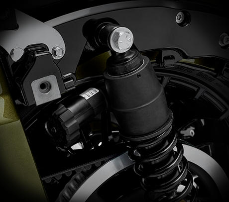 - Die neuen hinteren Emulsionsstoßdämpfer werden ganz einfach ohne Werkzeug nur durch Drehen des Knopfes individuell eingestellt.