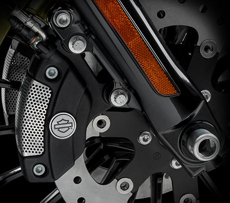 Ohne Zweifel gibt es Momente, da muss man schnell reagieren. Und diesen Moment kann man sich nicht aussuchen. Ebenso wenig den Zustand der Straße, sei sie nun eben, glatt und trocken oder aber genau das Gegenteil. Deshalb ist die Road King Special standardmäßig mit einer Reflex™ Brembo® Verbundbremse mit ABS ausgestattet.