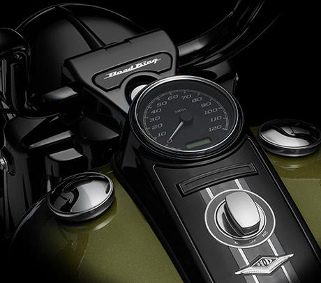 Die Road King Special verfügt über ein optimiertes Cruise Drive® Sechsganggetriebe, das für präzise Schaltvorgänge und ein angenehm niedriges Drehzahlniveau auf der Autobahn bürgt. Und das Isolated Drive System sorgt dafür, dass die Kraft gleichmäßig und ruckfrei auf das Hinterrad übertragen wird. Es ist einmalig, wenn ein Motorrad so anspricht, und sein dumpfes Grollen weithin zu hören ist.