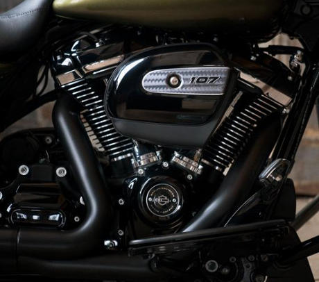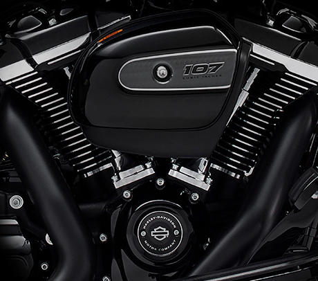 Unter dem düsteren Look dieses Touring-Motorrads schlägt das Herz des Milwaukee-Eight® 107 V-Twin-Motors. Neben dem 114 Kubikinch Motor ist dies der kraftvollste Motor, den Harley-Davidson je gebaut hat.