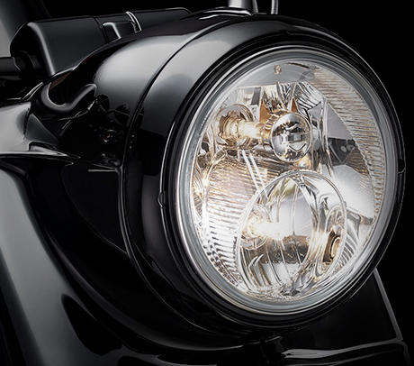 Mit dem schwarzen Scheinwerfergehäuse sieht die Road King Special aus, als käme ein Güterzug auf Sie zu. Groß und gebieterisch. Mit 986 Lumen trotzen Sie der Dunkelheit