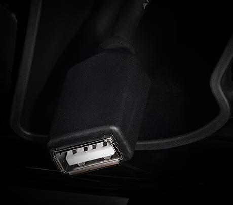 Auf Tastendruck öffnet sich die Jukebox. An den USB-Anschluss können Sie ein iPhone, einen iPod oder andere Speichermedien anschließen. Das System kann per Sprachbefehl oder Tastendruck angesteuert werden.