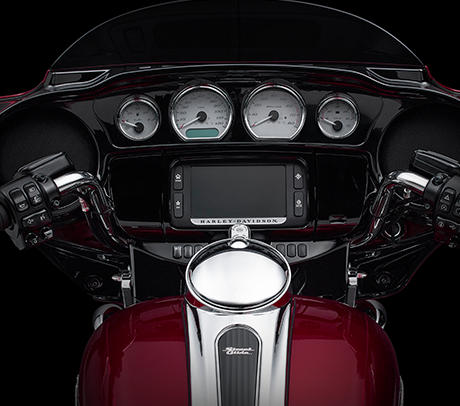 Der vollfarbige 6,5-Zoll-Touchscreen präsentiert Ihnen alle Informationen in Farbe, in Ihrem Blickfeld und größer denn je. Er punktet mit zeitgemäßen Grafiken, einstellbaren Farb-Themes sowie einer wahlweise automatischen oder manuellen Helligkeitsregelung. Das Design ist perfekt in die Verkleidung integriert. Mit zahlreichen neuen Funktionen hat Harley-Davidson die Bildschirmtechnologie auf die nächste Stufe gehoben. Vielleicht mehr, als Sie erwarten, aber genau das, was Sie verdienen.