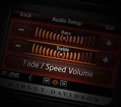 Die vielleicht wichtigste Neuigkeit: Das neue Boom! Box 6.5GT Audiosystem leistet bei einem Klirrfaktor von 1 Prozent satte 75 Watt pro Kanal. Zudem ist es mit einem perfekt auf die Hörumgebung auf einem Bike abgestimmten Equalizer ausgestattet, damit Sie Ihre Lieblingstracks exakt so wahrnehmen, wie Sie sie schätzen. Das Speed-Tuning-System bietet mehr als eine bloße Lautstärkeanpassung an die unterschiedlichen Geschwindigkeiten: Es passt auch die Bass- und Höhenwiedergabe an das Tempo an, sodass Sie stets einen optimalen Klang genießen - ob Sie nun gemächlich dahin rollen oder Ihrer Maschine die Sporen geben. Wie gefällt Ihnen der Sound Ihrer Harley?
