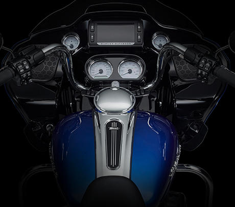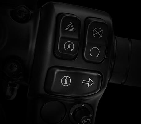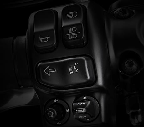Es ist schwer, die Fahrt zu genießen und sich auf den Verkehr zu konzentrieren, wenn die Schalter am Lenker umständlich zu bedienen sind. Deshalb hat Harley-Davidson den Lenkerarmaturen der neuen Touring Maschinen genauso viel Aufmerksamkeit geschenkt, wie dem Rest der Bikes. Sie sind nun ergonomischer gestaltet und exakt so positioniert und ausgerichtet, dass Sie perfekt unter Ihrem Daumen liegen. Harley-Davidson hat eine leicht aktivierbare Geschwindigkeitsregelanlage, griffgünstige Bedienelemente für die Infotainment Funktionen und einen leicht greifbaren Trigger zur Aktivierung der Displayanzeigen angebracht. Zudem wird jetzt jede Tastenaktivierung durch ein vertrauenseinflößendes, fühlbares Klicken bestätigt. Auch der Zündschalter wurde optimiert. Und die elektrische Anlage ist bereits auf das einfache Customizing mit weiterem elektrischen Parts and Accessories vorbereitet.