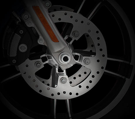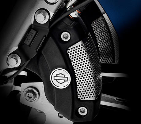 Vertrauen ist gut, Kontrolle ist besser. Brembo® Hochleistungs-Doppelscheibenbremsen vorn sorgen für eine exakt dosierbare Verzögerung, die Vertrauen schafft und die perfekte Kontrolle über das Bike gewährleistet. Die Vierkolben-Bremssättel vorn und hinten zählen zum Besten, was auf dem Markt zu haben ist. Ein weiteres Beispiel für die Sorgfalt der Motor Company, die sich bis ins Detail erstreckt, um Ihnen eine sorgenfreie Fahrt zu sichern.