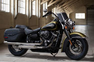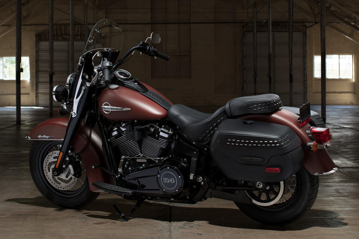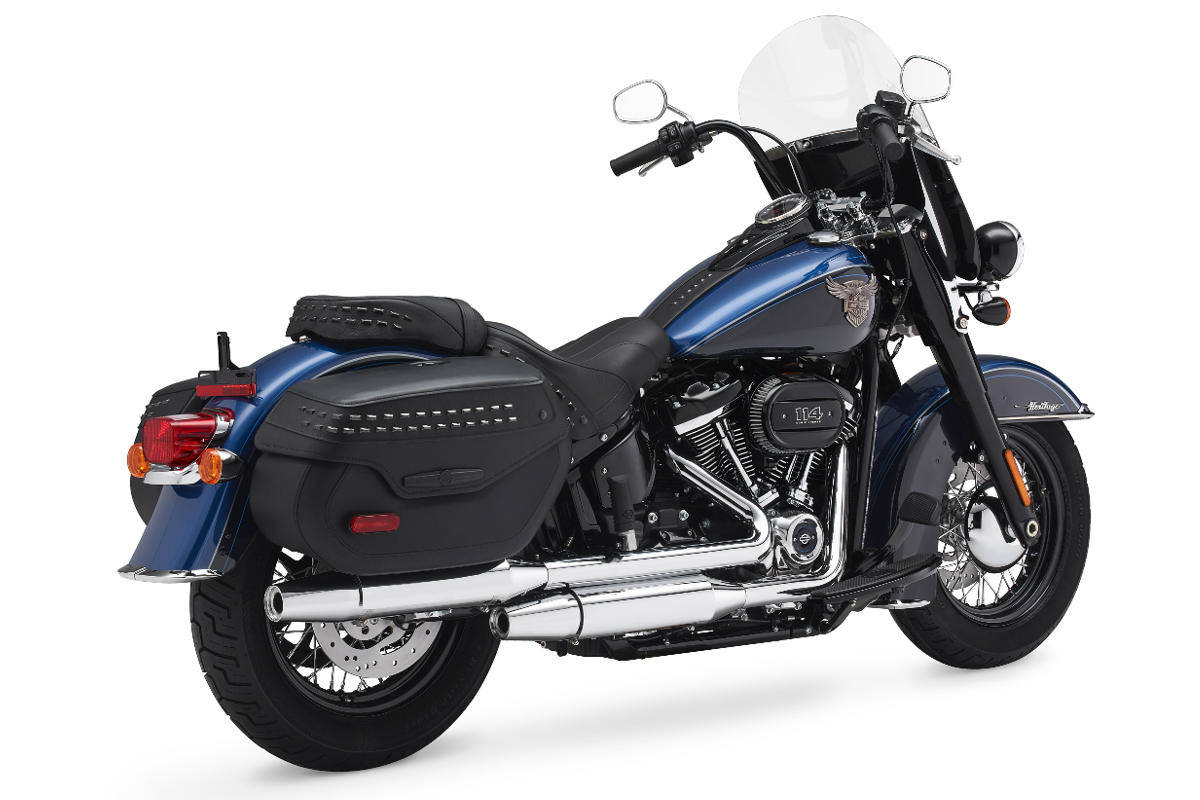 Die Heritage Classic hat sich von der Chrom-Verliebtheit der 50er-Jahre getrennt. Die Referenz an die Geschichte ist durchaus noch da, aber jetzt als Anleihe bei den klassischen, in Schwarz gehaltenen Harley-Davidson Modellen der Fünfzigerjahre. Dieser klassische Look ist mit moderner Technik verbunden. Im Mittelpunkt steht der dunkle, starker Milwaukee-Eight V-Twin (optional mit Milwaukee-Eight 114 erhältlich). Dann die neue, abnehmbare Windschutzscheibe sowie die verschließbaren und wasserdichten Hartschalenkoffer im Look von Satteltaschen. Das Gewicht im Vergleich zum Vorgängermodell um 17 kg reduziert, die Zuladung erhöht. Serienmäßig mit Cruise Control und ABS.Merkmale: