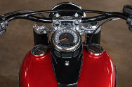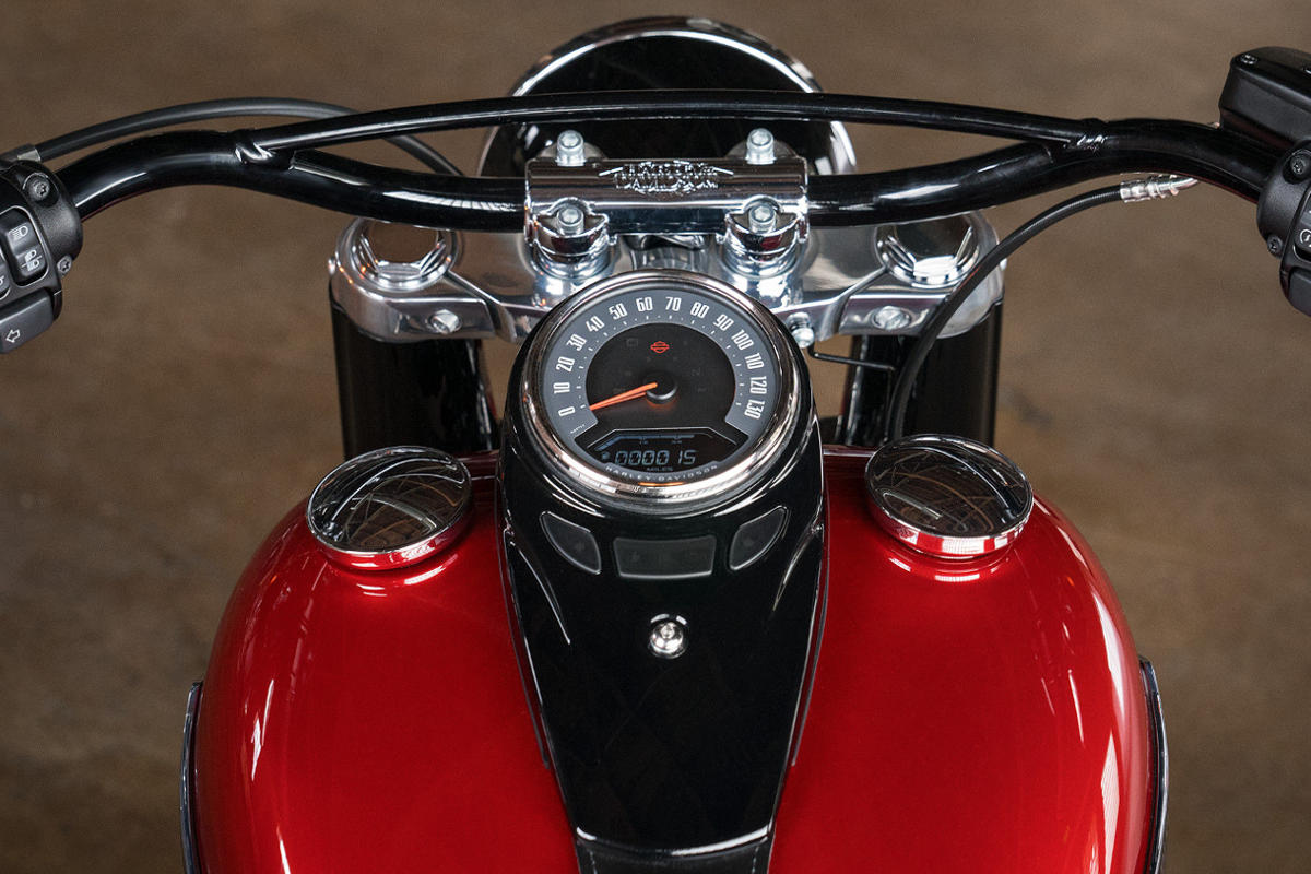 Gechopptes Rear-End, schlanker Fender vorn, wenig Chrom – reduziert auf das, was zählt, ist die Slim eine Hommage an die faszinierenden Bobber der Nachkriegszeit. Eine fahrende Geschichtsstunde in Sachen Vintage-Stil.Wuchtige Power aus dem Milwaukee Eight, mehr Schräglage, das verbesserte Fahrwerk und dazu 17 Kilo weniger im Vergleich zum Vorgängermodell merkt man, wo immer man auch unterwegs ist. Drahtspeichenräder, Hollywood-Lenker, das dunkel gehaltene Design des Front Ends und der flache Solositz im „Tuck and Roll“-Style sind weitere Kennzeichen der Softail Slim 2018.