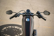 Adrenalin trifft auf Custom-Design im Garagenstil. Die Sportster Roadster bringt erstklassige Features mit, von den Offset-Split-Rädern oder der Upside-Down-Gabel bis zur erstklassigen Heckfederung. Starke Grahpics auf dem klassischen Kraftstofftank, ein geripptes Timer-Cover und der gechoppte Heckfender machen den Garage-Built-Stil perfekt. Aggressiv die Fahrposition auf der Doppelsitzbank und dennoch komfortabel dank des tiefergelegten Lenkers und der mittigen Fußrastenanlage. Passend zum 45-Grad V2 mit 1200 cm³, denn der liefert der wendigen, agilen Maschine ein explosives Drehmoment.