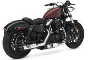 Kräftig, bullig, stark ist ihr Charakter und ihre Erscheinung. Zur markanten Bulldog-Haltung gesellt sich der leistungsstarke 1200 ccm Evolution-Motor. Ein Hingucker die bullige Frontpartie mit dem großen, breiten MT90-Reifen, dazu der Satz schwarzer Hardcore-Felgen. Aus dem Triebwerk der sonore Sound zum massiven Drehmoment, Kraft, die beeindruckende Bremsen im Zaum halten. Gekrönt vom kultigen 7,9-Liter-Tank, den die Welt zum ersten Mal 1948 gesehen hat, und der auf einer Maschine wie dieser noch nie zuvor zu sehen war. Dazu Graphics aus den 70er-Jahren. Die Forty-Eight feiert seine Wiedergeburt. Dieses Bike bietet neben seinem ausdrucksstarken Stil auch noch bestes Handling und erstklassigen Komfort.