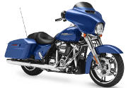 Das Original bietet all das, was Kilometerfresser mögen: Ein funktionaler und luxuriöser Tourer im schnörkellosen und äußerst cleanen Custom-Look, überflüssigen Zierrat sucht man an dieser puristischen Maschine vergebens. Wenn es um den minimalistischen Hot-Rod-Look geht, dann muss es eine Harley-Davidson Street Glide sein.Die Street Glide ist gerade so weit gestrippt, dass sie trotz ihres markanten Auftritts nicht die Bequemlichkeit vermissen lässt, die eine lange Reise angenehm macht. Hinter der Verkleidung finden Fahrer und Beifahrer typischen Harley-Davidson Komfort, z.B. Schaltwippe, große Trittbretter, bequeme Sitzbank. Für die Unterhaltung unterwegs sorgt das leistungsstarke Audio-System. 2018 ist sie als Sondermodell zum 15th Anniversary zu haben, und unter vielen weiteren Farbvarianten stehen 2 ´"Hard Candy"-Lackierungen zur Wahl.